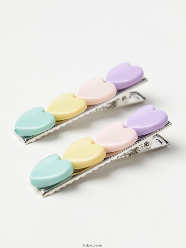 Harclips colorés en métal avec coeurs en plastique sur le dessus.