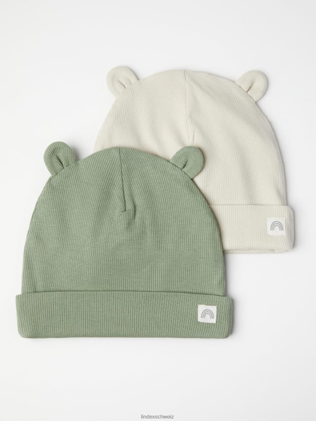 édition en ligne. deux jolis bonnets côtelés avec de petites oreilles sur le dessus, un en beige et un en marron clair. matériel. c’est une pièce certifiée Gots. il est fabriqué à partir de coton biologique et chaque étape de la production a été certifiée de manière indépendante pour garantir qu’elle respecte les exigences sociales et environnementales de Gots (norme mondiale des textiles biologiques).