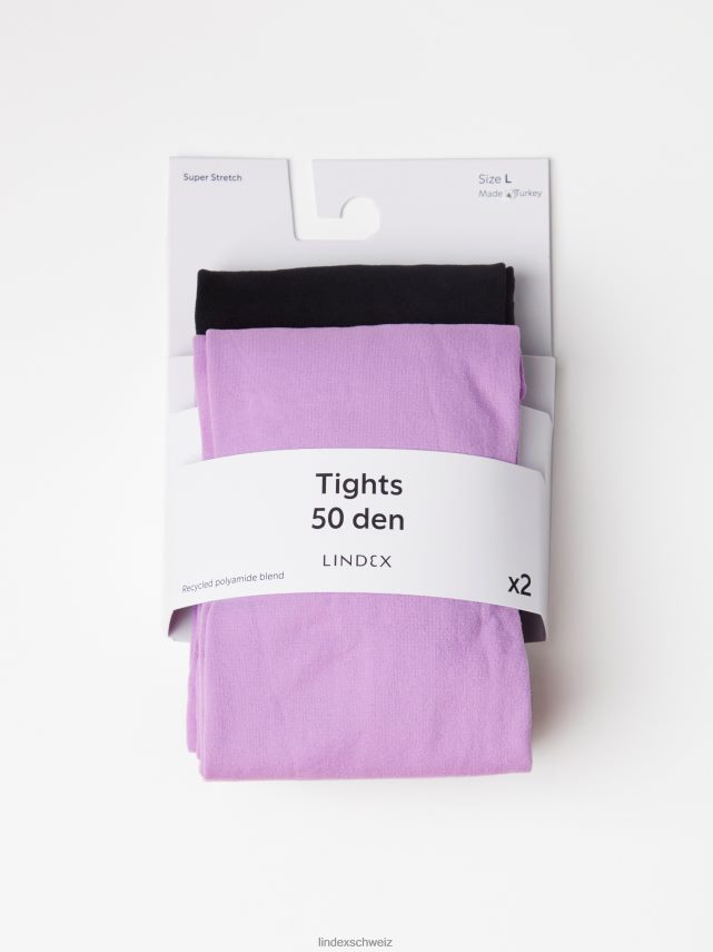 Lot de 2 collants mats 50 deniers lilas poussiéreux Lindex vêtements femmes D44L8F2365