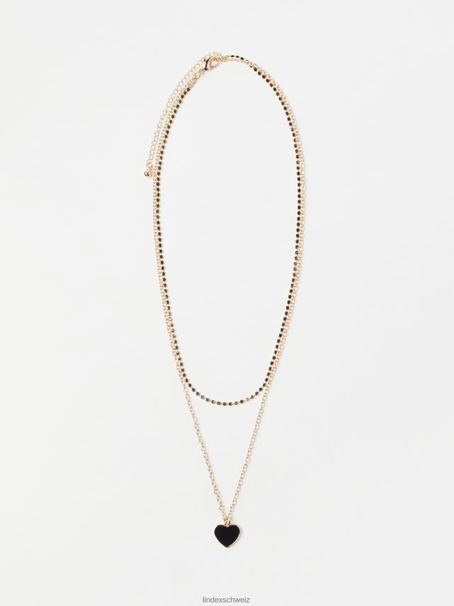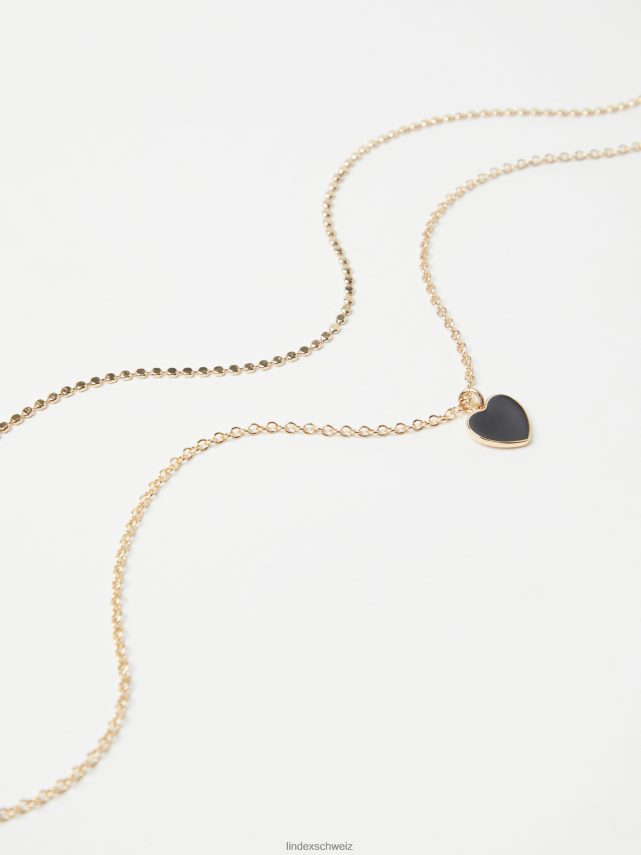 deux colliers en métal doré. l’un d’eux avec un petit pendentif en forme de cœur.