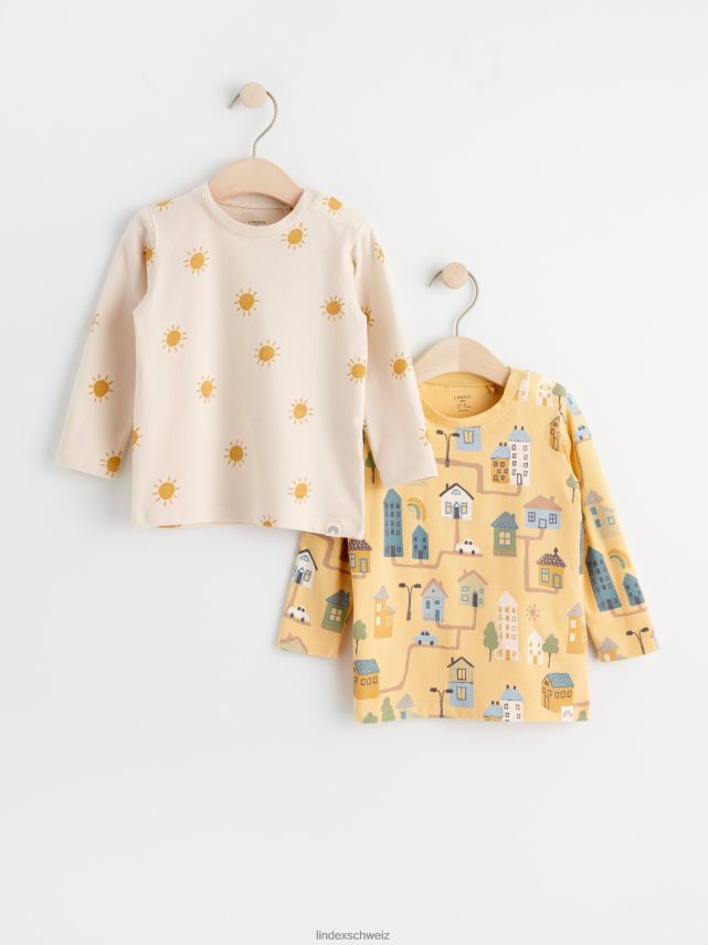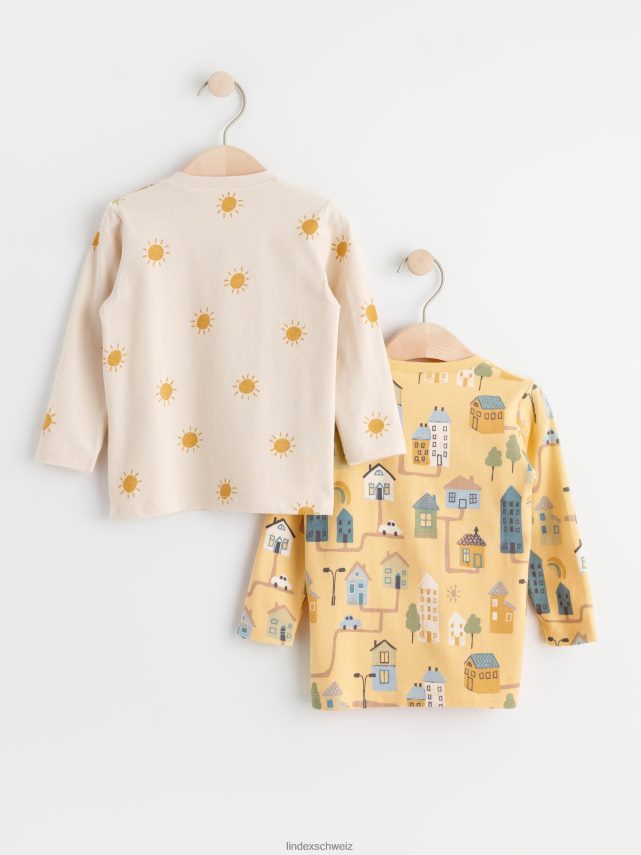 deux hauts à manches longues doux et confortables avec différents imprimés sur l’ensemble. matériel. c’est une pièce certifiée Gots. il est fabriqué à partir de coton biologique et chaque étape de la production a été certifiée de manière indépendante pour garantir qu’elle respecte les exigences sociales et environnementales de Gots (norme mondiale des textiles biologiques).