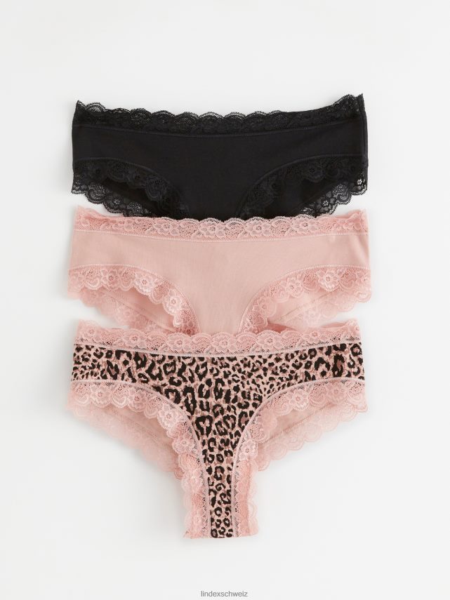 Lot de 3 culottes brésiliennes taille normale rose poussiéreux Lindex vêtements femmes D44L8F1955