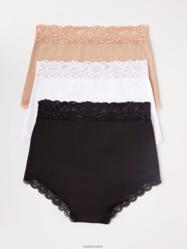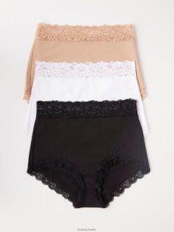 édition en ligne. trois culottes en coton doux et confortables dans un style classique avec une taille haute et une bordure en dentelle. matériel. c’est une pièce certifiée Gots. il est fabriqué à partir de coton biologique et chaque étape de la production a été certifiée de manière indépendante pour garantir qu’elle respecte les exigences sociales et environnementales de Gots (norme mondiale des textiles biologiques).