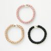 un lot de trois élastiques à cheveux tressés de différentes couleurs.
