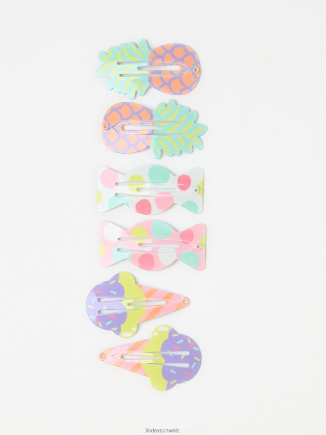 Lot de 6 pinces à cheveux de différentes couleurs et motifs amusants.