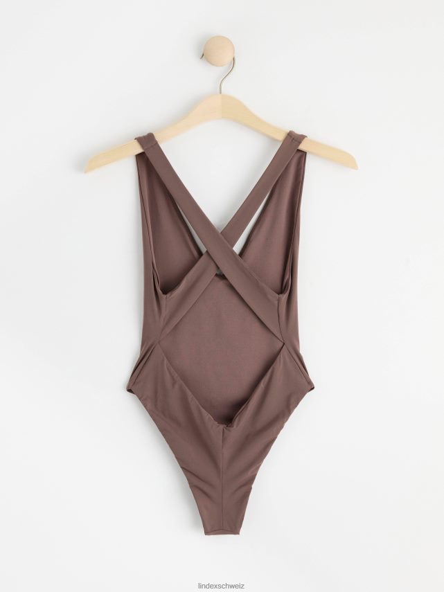 un maillot de bain élégant avec des bretelles croisées dans le dos et une découpe dans le bas du dos. matériel. cette pièce est partiellement réalisée en polyamide recyclé. En utilisant du polyamide recyclé, cela signifie que des matériaux qui autrement auraient été gaspillés ont une autre chance. il est beaucoup plus économe en ressources que la production de nouveaux matériaux, ce qui le rend meilleur pour l’environnement et réduit l’impact climatique.