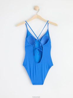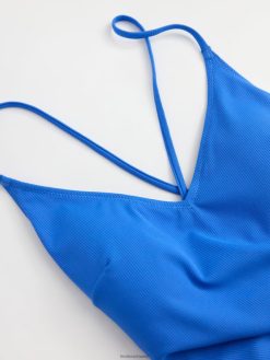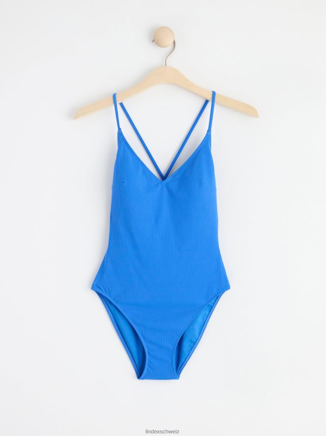 un maillot de bain côtelé avec de fines bretelles croisées dans le dos. matériel. cette pièce est partiellement réalisée en polyamide recyclé. En utilisant du polyamide recyclé, cela signifie que des matériaux qui autrement auraient été gaspillés ont une autre chance. il est beaucoup plus économe en ressources que la production de nouveaux matériaux, ce qui le rend meilleur pour l’environnement et réduit l’impact climatique.