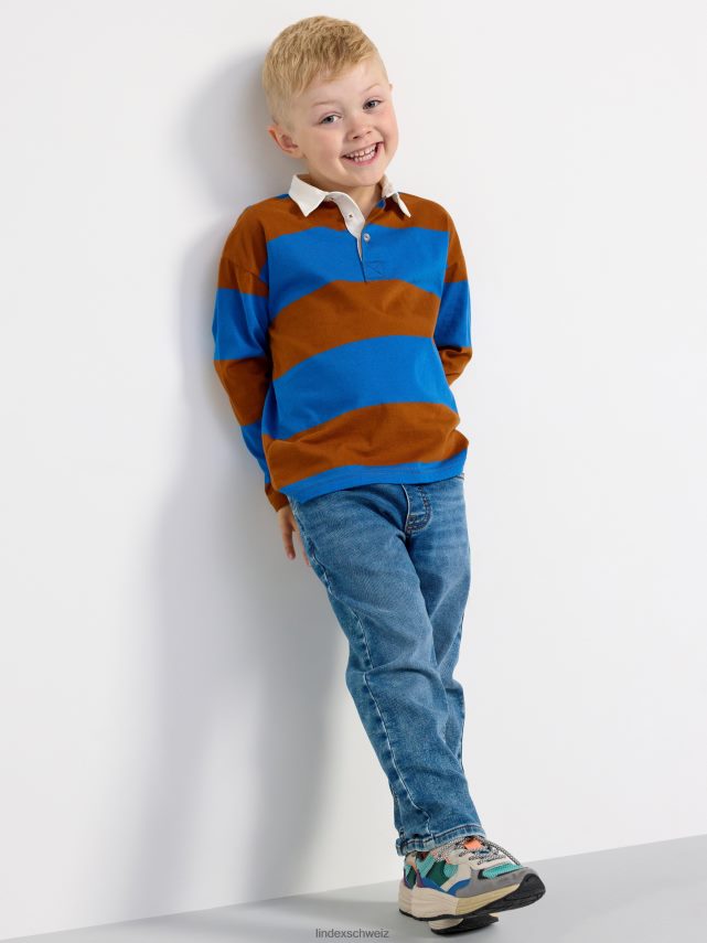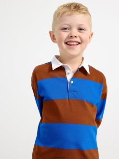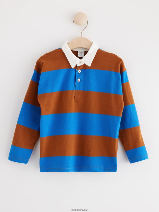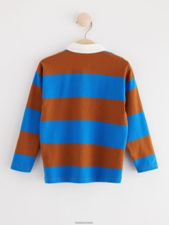 chemise de rugby à rayures en coton à manches longues, une patte de boutonnage sur le devant et un col.