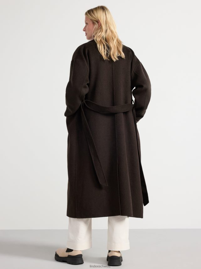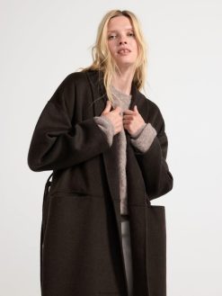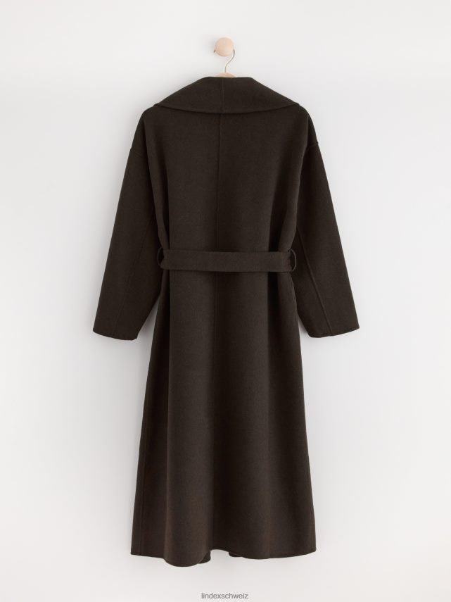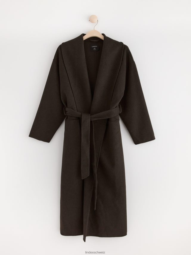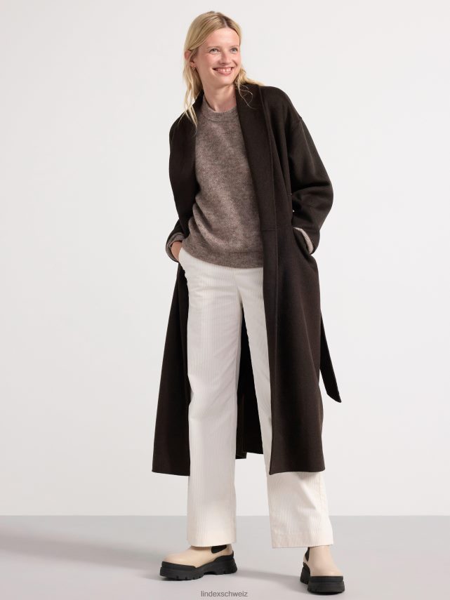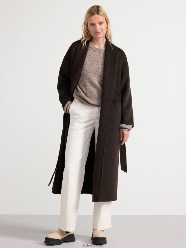manteau élégant en laine mélangée avec une coupe droite, des poches avant et une bande à nouer à la taille.