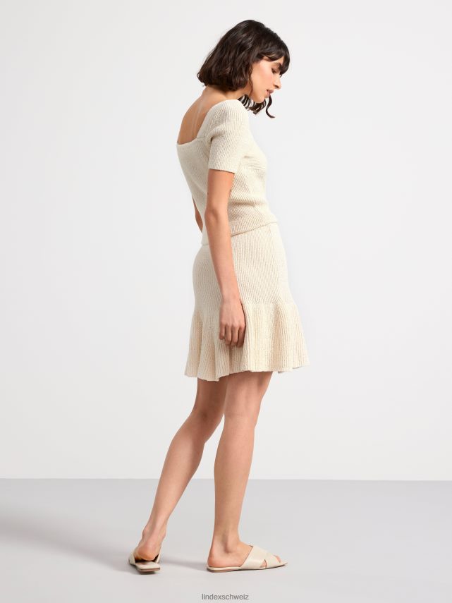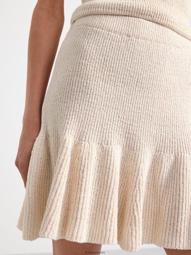 mini-jupe douce et extensible à silhouette évasée, confectionnée en coton mélangé tricoté. matériel. cette pièce est partiellement fabriquée en coton recyclé. en utilisant du coton recyclé, cela signifie que le coton qui a déjà été cultivé et qui aurait été gaspillé a une autre chance. il est beaucoup plus économe en ressources et en eau par rapport à la culture de nouveau coton.