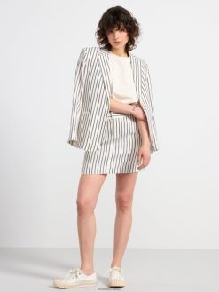 Mini-jupe en coton recyclé avec rayures classiques et poches sur les côtés, confectionnée dans un tissu en coton mélangé robuste. matériel. cette pièce est partiellement fabriquée en coton recyclé. en utilisant du coton recyclé, cela signifie que le coton qui a déjà été cultivé et qui aurait été gaspillé a une autre chance. il est beaucoup plus économe en ressources et en eau par rapport à la culture de nouveau coton.