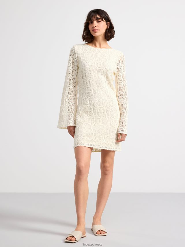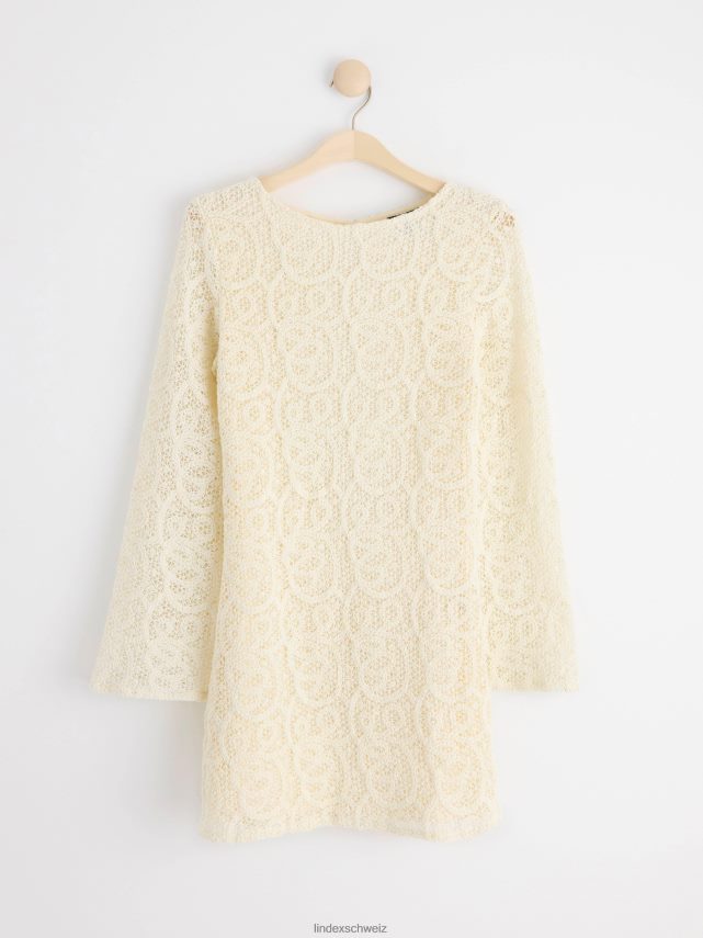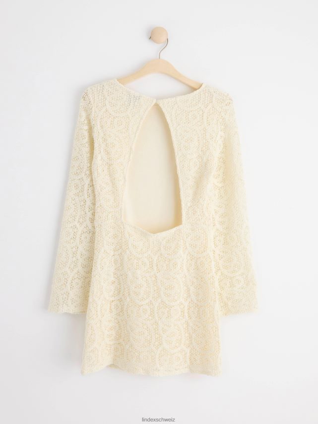 une jolie mini-robe de coupe slim et avec des manches longues légèrement évasées. la robe est dotée d’un magnifique motif de dentelle sur toute la surface ainsi que d’une découpe dans le dos.