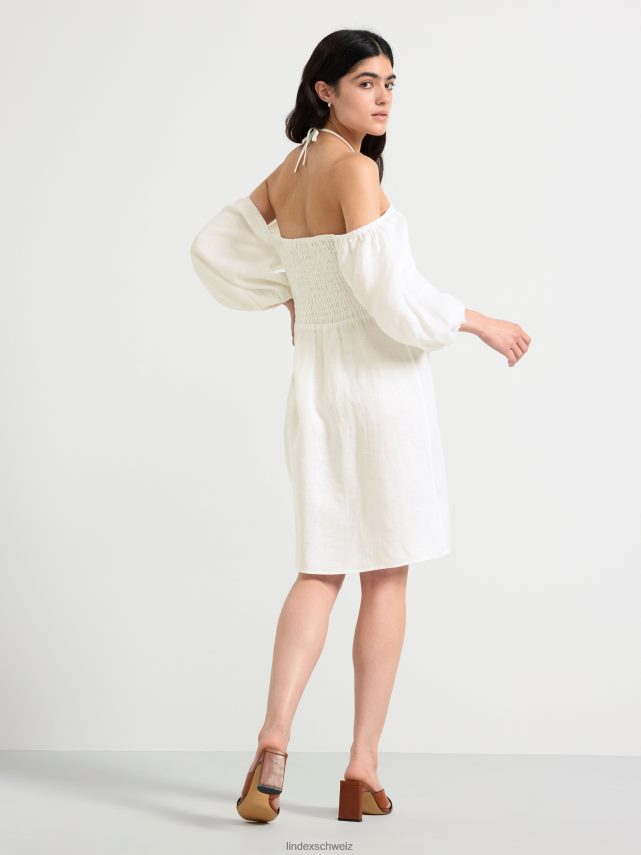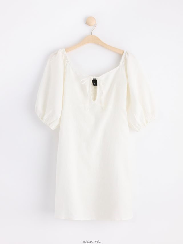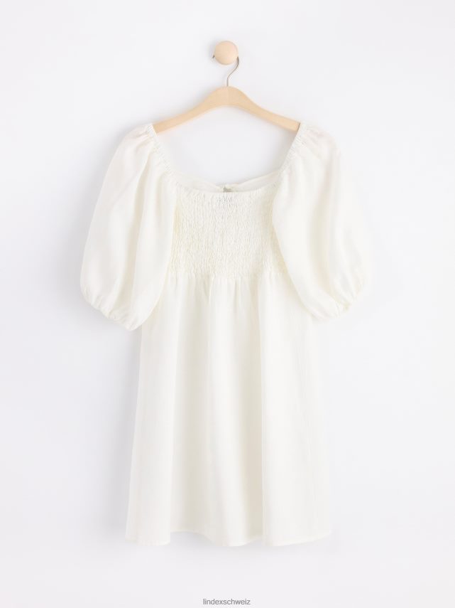 une mini-robe en lin doux, avec des manches courtes et larges et un détail smocké dans le dos. qualité supérieure. il s’agit d’une pièce de qualité supérieure en lin. le lin est une matière naturelle aérée, durable et confortable à porter.
