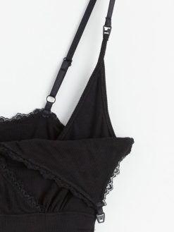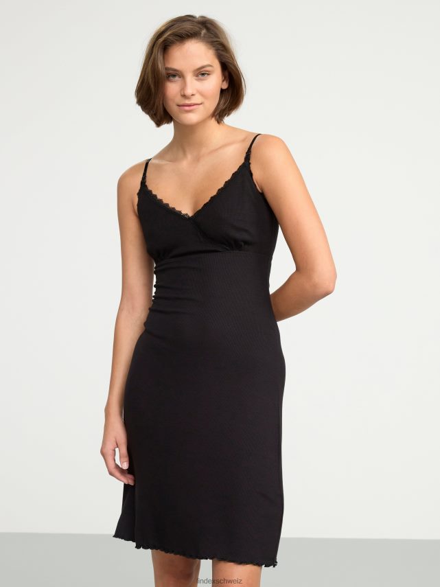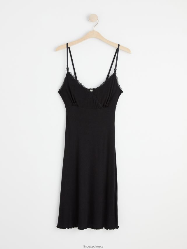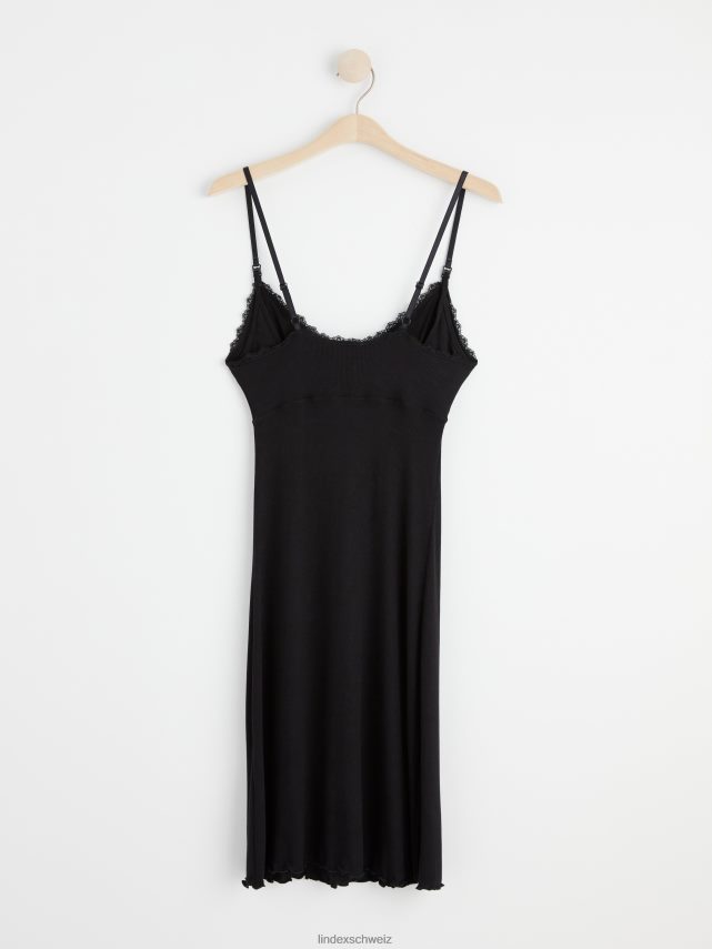 nuisette de nuit côtelée Mom avec dentelle noir Lindex vêtements femmes D44L8F2126