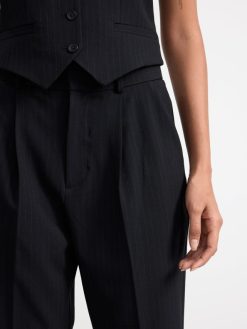 pantalon tissé en matière recyclée avec une taille haute, une jambe fuselée et des poches latérales.