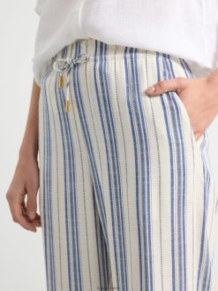 pantalon élégant en viscose tissée douce avec des rayures sur toute la surface, une taille élastiquée confortable et des poches latérales. matériel. cette pièce est fabriquée en écovero Lenzing, une option plus durable par rapport à la viscose conventionnelle. le matériau est issu d’une exploitation forestière responsable et est produit avec un impact moindre sur l’environnement.