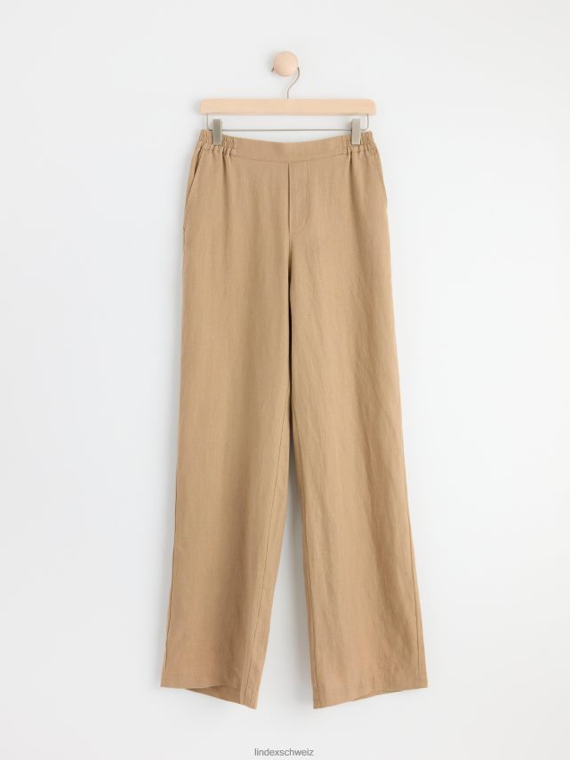 pantalon droit en lin bella kaki Lindex vêtements femmes D44L8F549