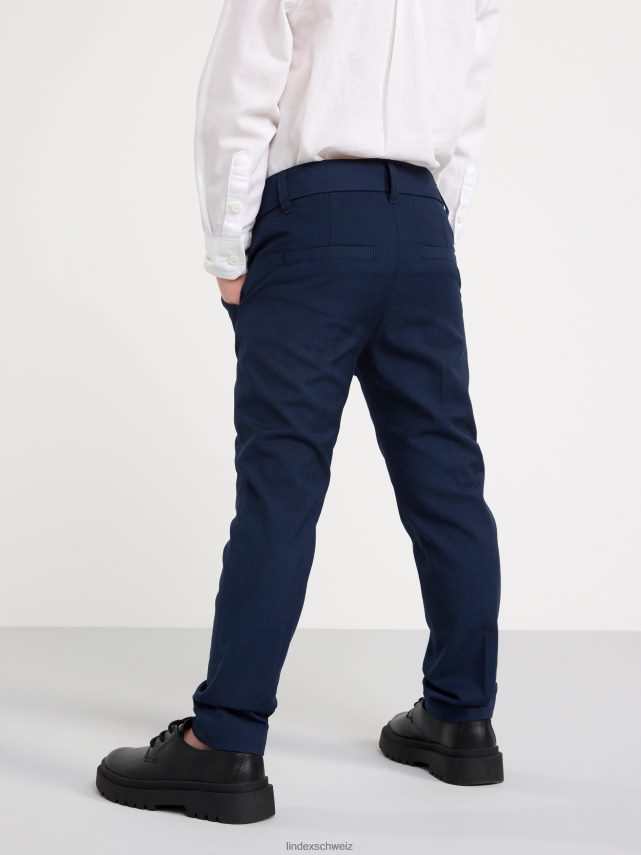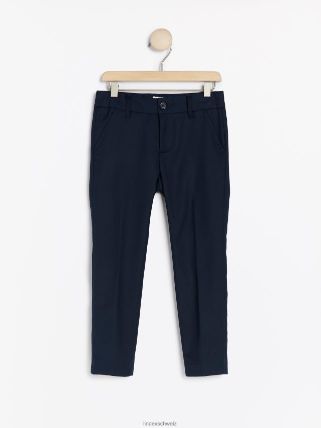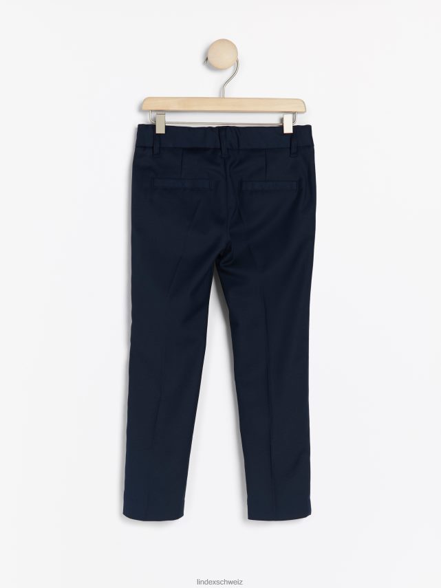 édition en ligne. Pantalon de costume bleu foncé festif avec plis et taille réglable.