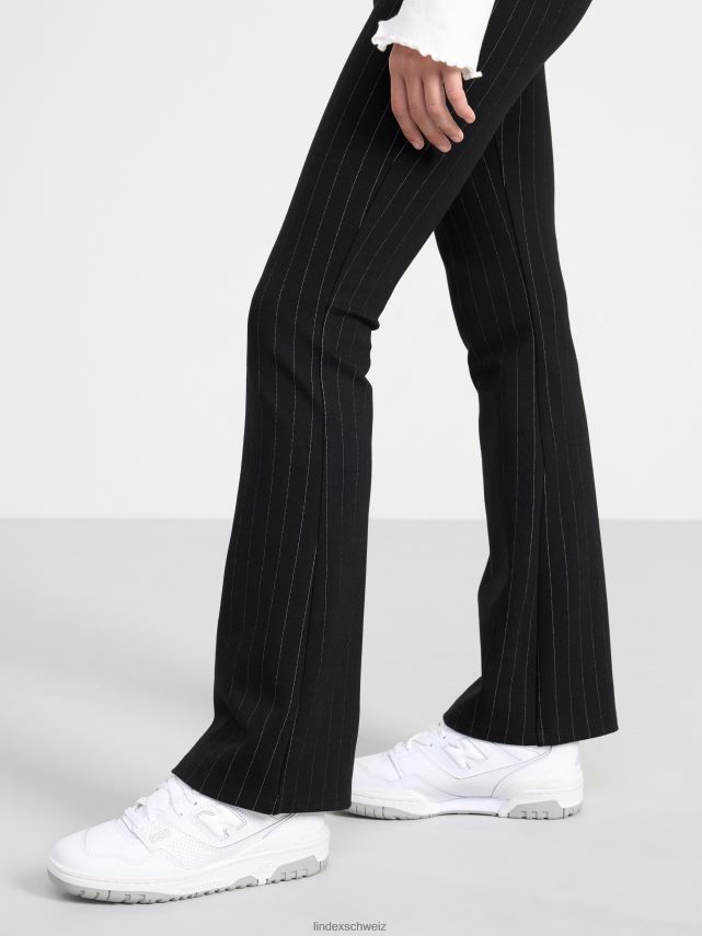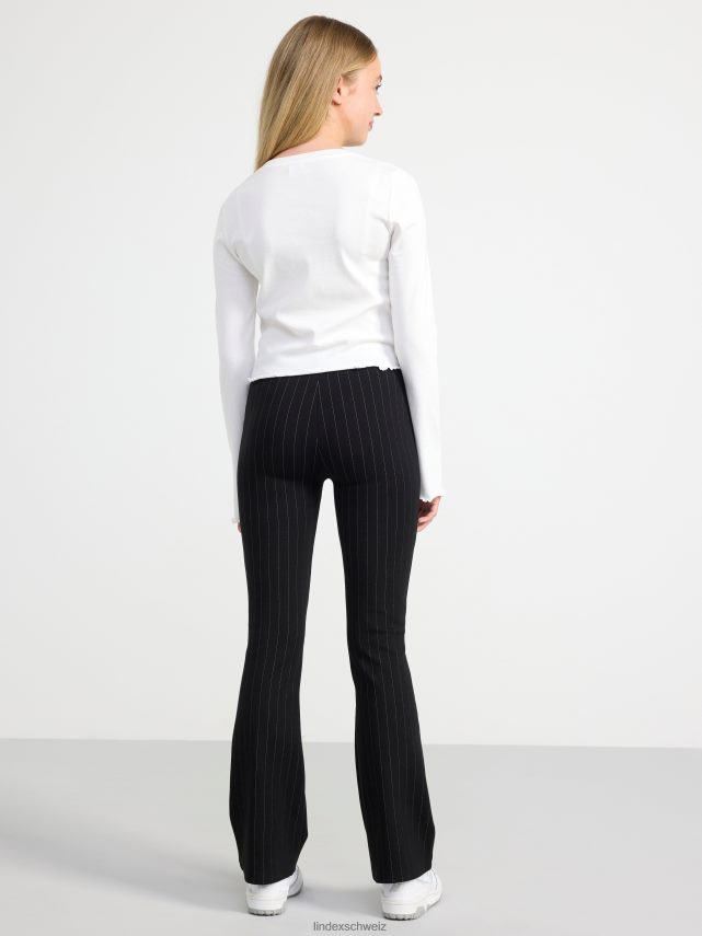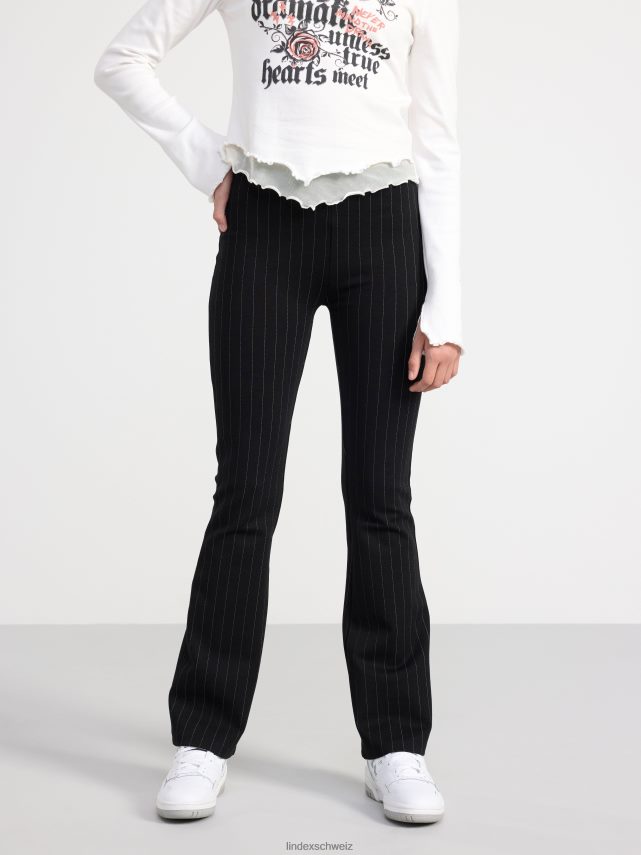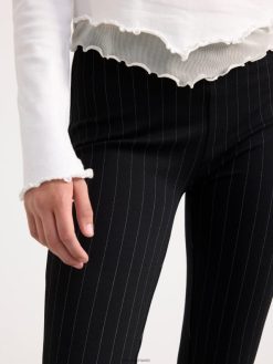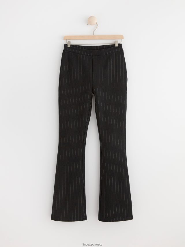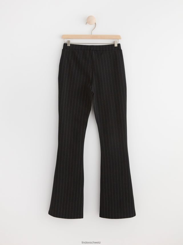 pantalon chic et confortable avec jambes évasées, taille haute et rayures all-over. matériel. cette pièce est basée une fois de plus sur sodra, une nouvelle matière première innovante en fibre de viscose, où des textiles recyclés sont combinés avec du bois issu de forêts gérées de manière responsable. oncemore est un matériau de haute qualité et est produit avec un impact moindre sur l’environnement par rapport aux matières premières en fibre de viscose conventionnelles.