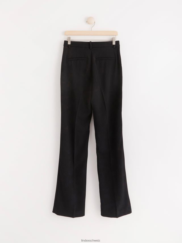 Pantalon dans notre coupe Fiona avec taille normale et jambe évasée extra longue avec plis pour un look décontracté mais bien habillé.