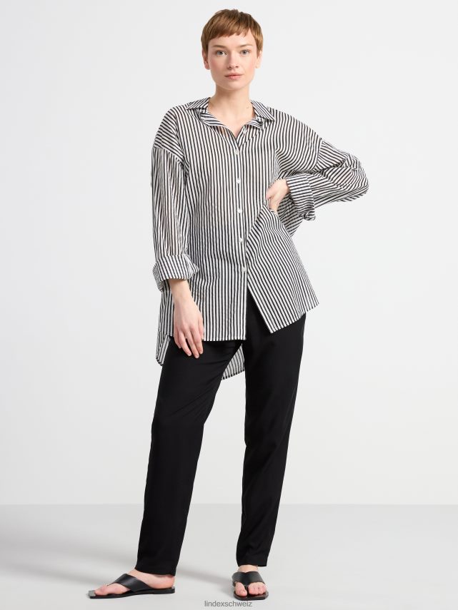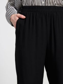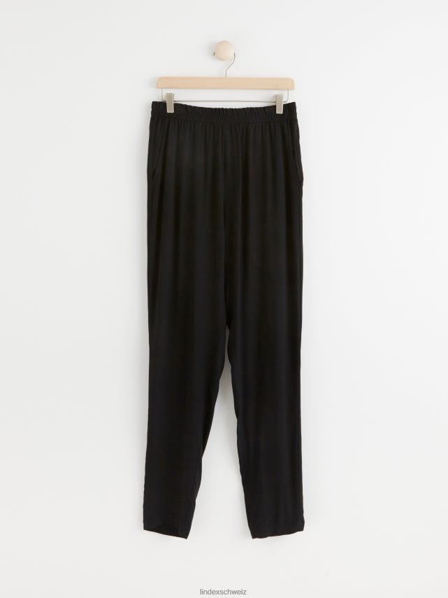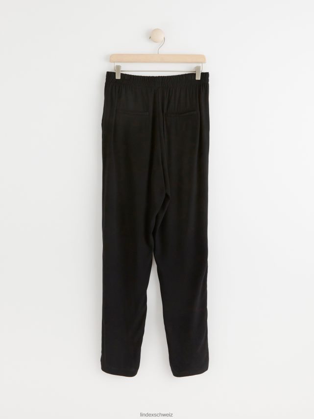 pantalon élégant en viscose certifiée avec une taille haute élastiquée, des détails épurés et des jambes fuselées. matériel. cette pièce est basée une fois de plus sur sodra, une nouvelle matière première innovante en fibre de viscose, où des textiles recyclés sont combinés avec du bois issu de forêts gérées de manière responsable. oncemore est un matériau de haute qualité et est produit avec un impact moindre sur l’environnement par rapport aux matières premières en fibre de viscose conventionnelles.