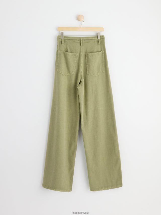 un pantalon en sergé de coton doux avec une jambe extra large et des poches plaquées à l’arrière.