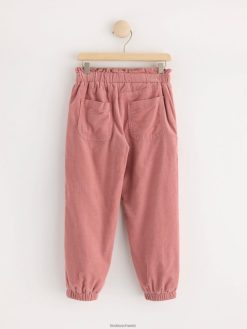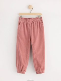 Pantalon confortable en velours côtelé avec une taille haute réglable et une jambe fuselée.
