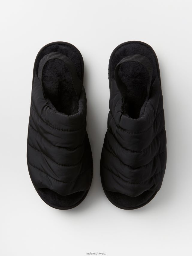 une paire de chaussons rembourrés doux et chauds avec doublure en fausse fourrure et brides élastiques au talon. matériel. cette pièce est partiellement réalisée en polyamide recyclé. En utilisant du polyamide recyclé, cela signifie que des matériaux qui autrement auraient été gaspillés ont une autre chance. il est beaucoup plus économe en ressources que la production de nouveaux matériaux, ce qui le rend meilleur pour l’environnement et réduit l’impact climatique.