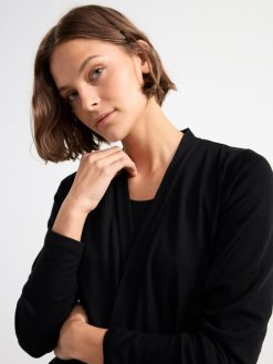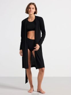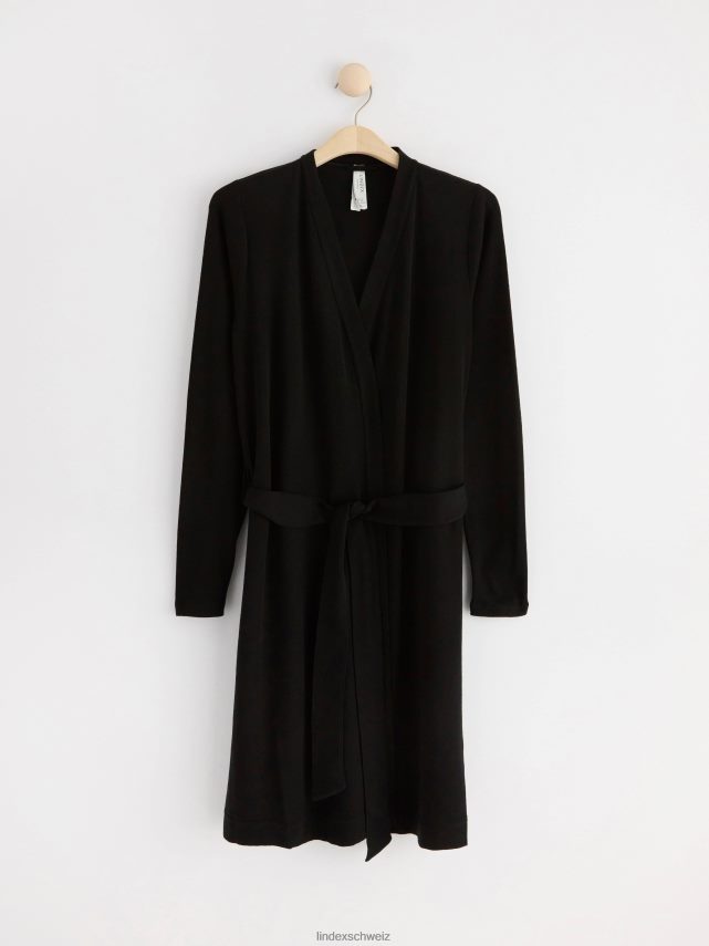 Peignoir super doux en laine avec manches longues, ouvert sur le devant et bande à nouer amovible à la taille.