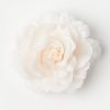 une grande fleur en matière tissée qui peut être portée aussi bien en pince à cheveux qu’en broche.