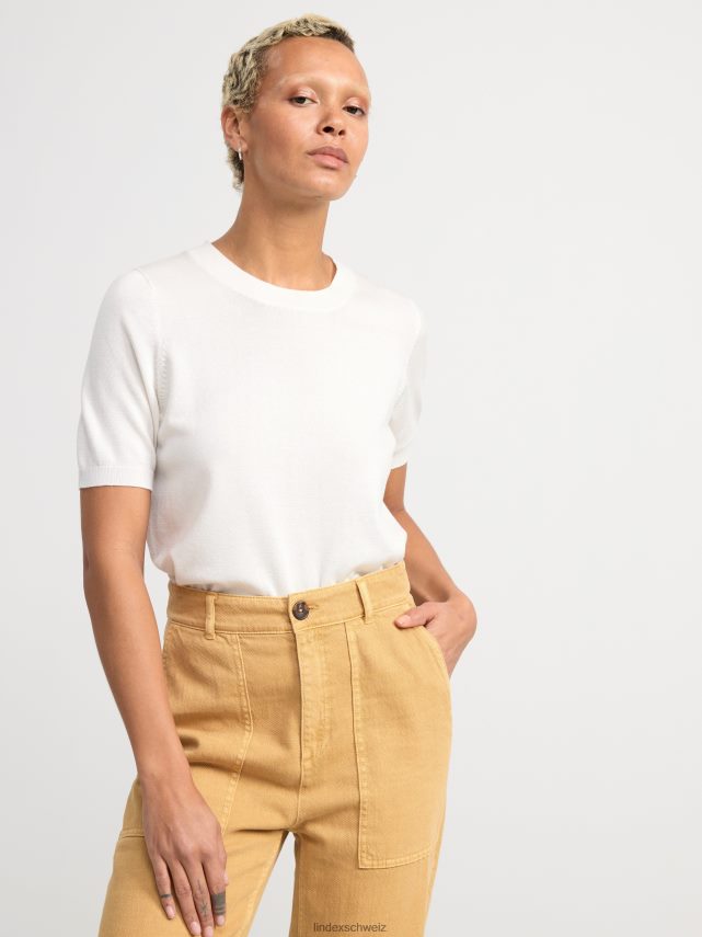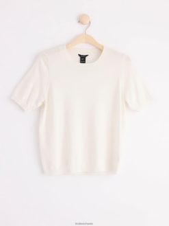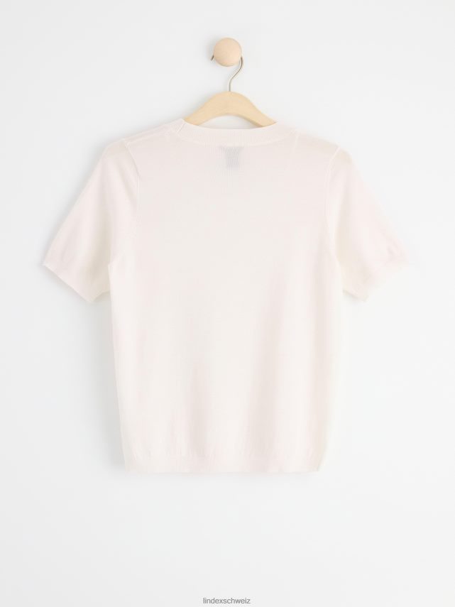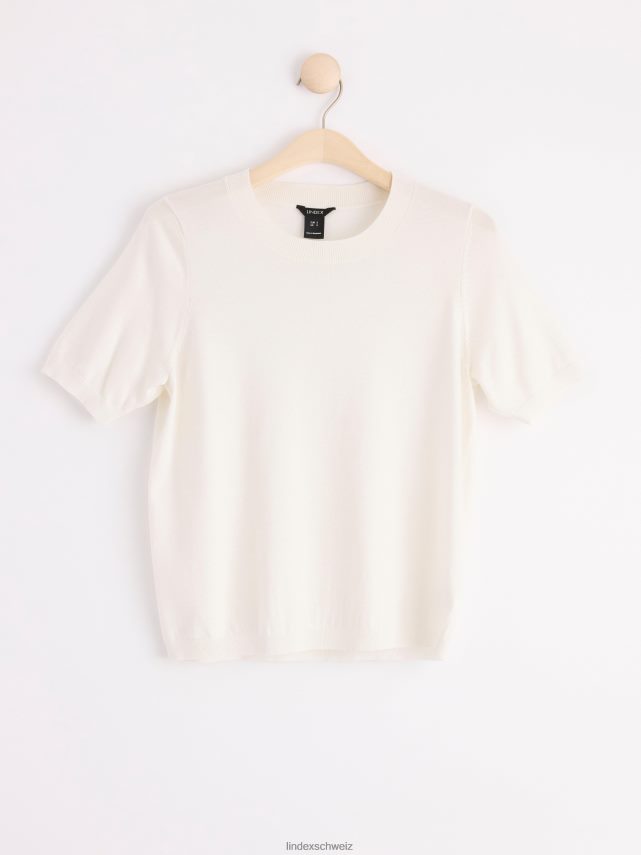 pull en maille fine à manches courtes blanc cassé Lindex vêtements femmes D44L8F773