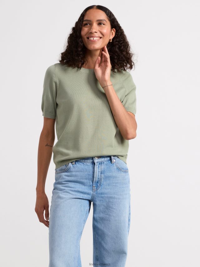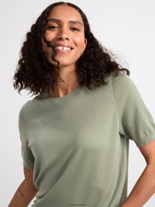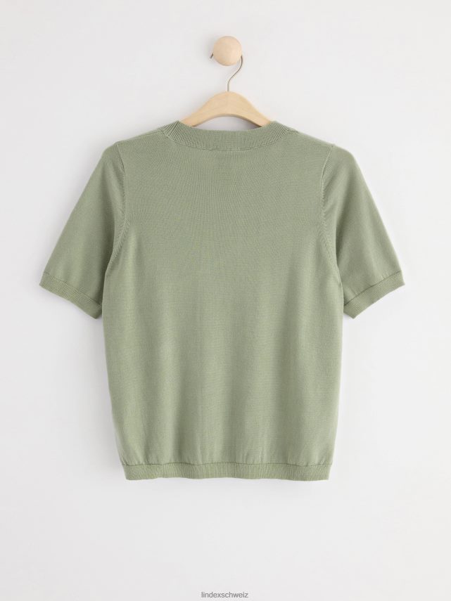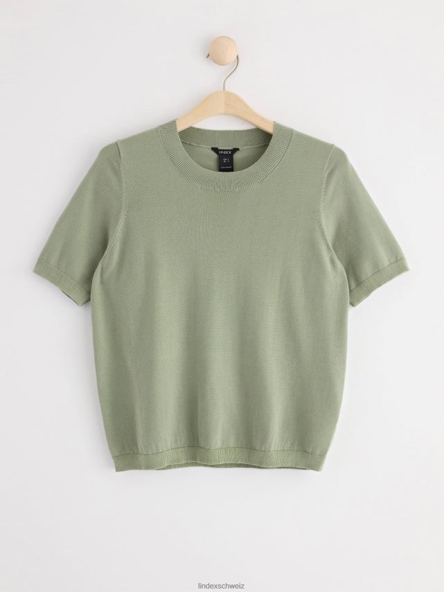 pull en maille de lyocell certifié à manches courtes, coupe droite et encolure ronde.
