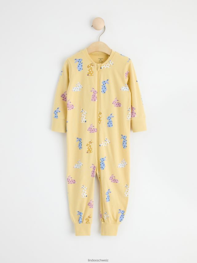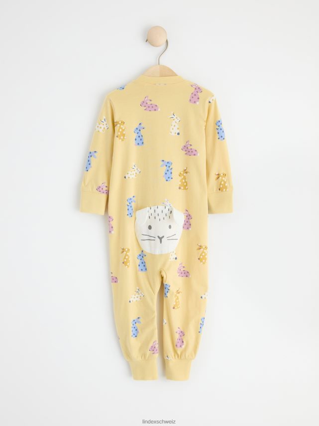 pyjama confortable avec un imprimé de lapin sur toute la surface ainsi qu’un joli lapin cousu dans le dos. matériel. c’est une pièce certifiée Gots. il est fabriqué à partir de coton biologique et chaque étape de la production a été certifiée de manière indépendante pour garantir qu’elle respecte les exigences sociales et environnementales de Gots (norme mondiale des textiles biologiques).