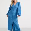 une robe fluide à manches longues avec boutonnage sur le devant et bande à nouer à la taille. notez que les trois premiers boutons en haut ne peuvent pas être fermés. matériel. cette pièce est basée une fois de plus sur sodra, une nouvelle matière première innovante en fibre de viscose, où des textiles recyclés sont combinés avec du bois issu de forêts gérées de manière responsable. oncemore est un matériau de haute qualité et est produit avec un impact moindre sur l’environnement par rapport aux matières premières en fibre de viscose conventionnelles.