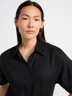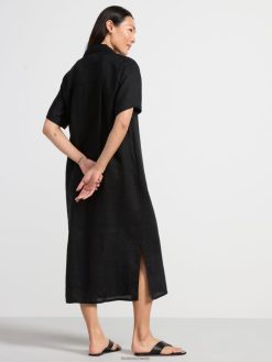 une robe chemise légère et aérée de longueur midi avec des manches courtes, des boutons sur le devant et des fentes des deux côtés à l’ourlet inférieur. prime. il s’agit d’une pièce de qualité supérieure en lin. le lin est une matière naturelle aérée, résistante et agréable à porter.
