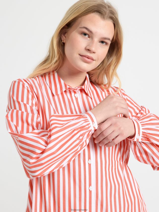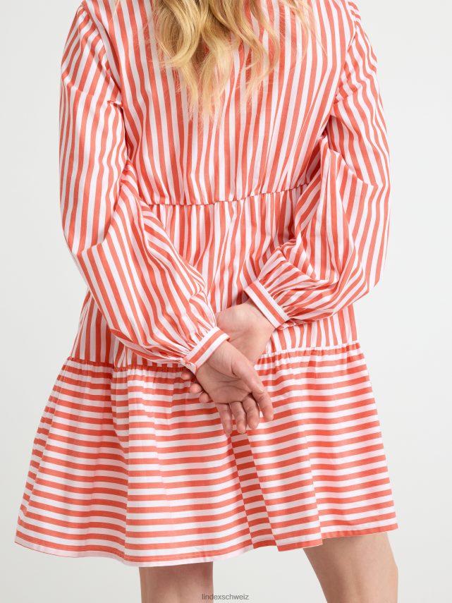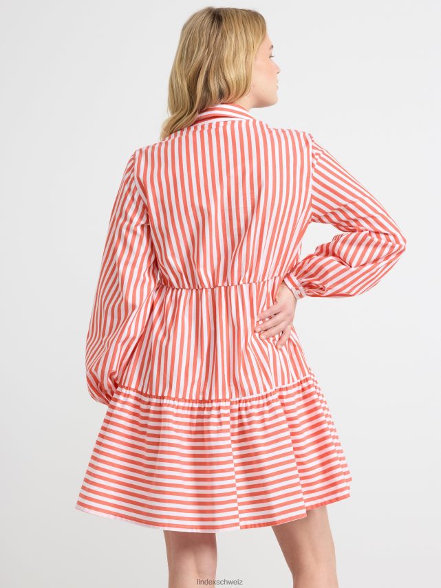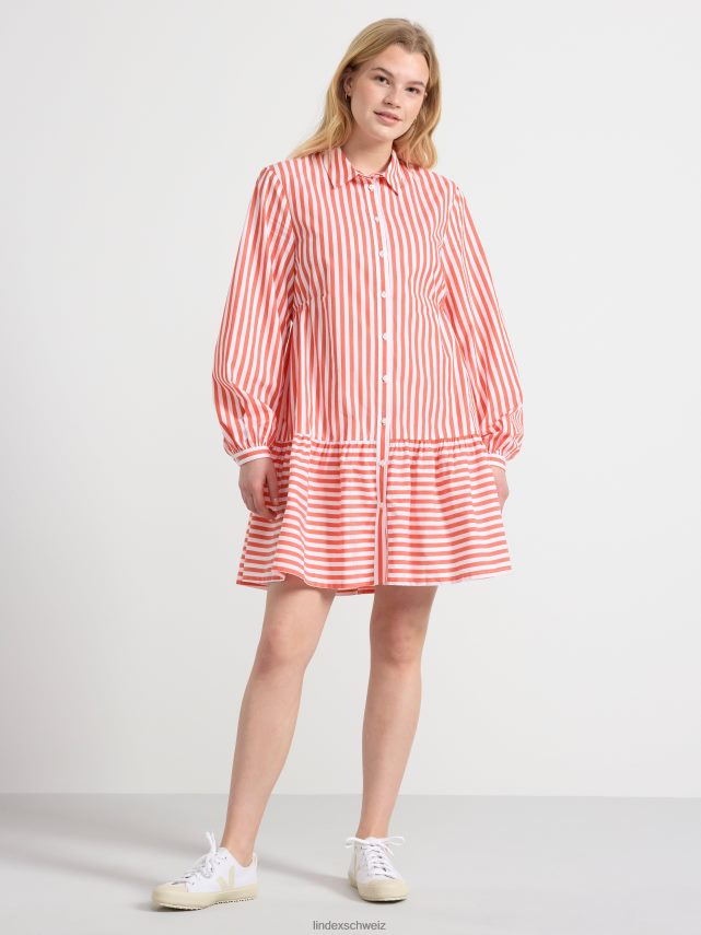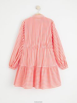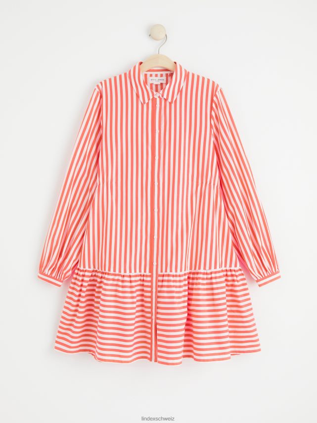 Robe chemise élégante avec des rayures sur toute la surface, un col et une fermeture boutonnée sur le devant, ainsi qu’un volant sur l’ourlet du bas.