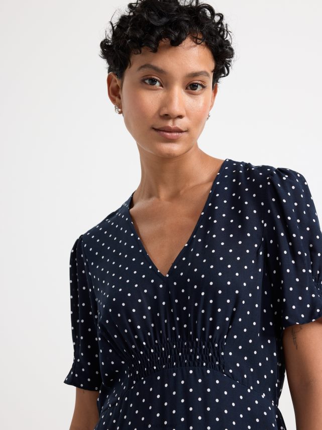 robe courte à col en V et manches courtes, confectionnée en viscose douce. matériel. cette pièce est confectionnée en lenzing ecovero, une option plus durable par rapport à la viscose conventionnelle. le matériau provient d’une foresterie responsable et est produit avec un impact moindre sur l’environnement.