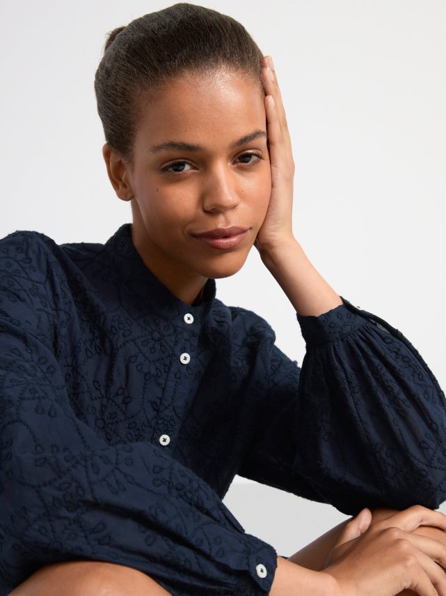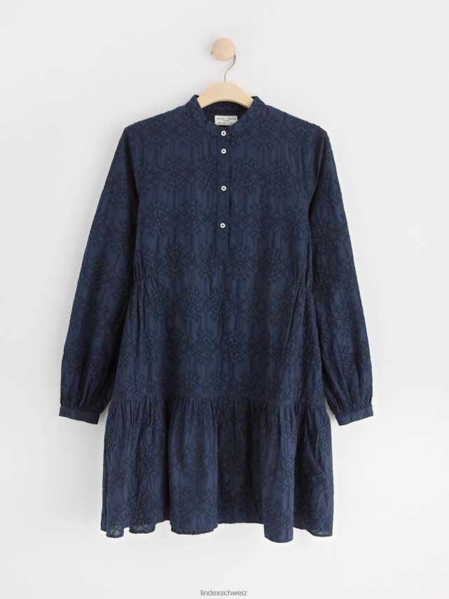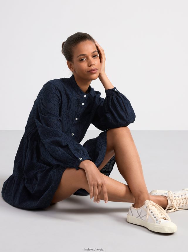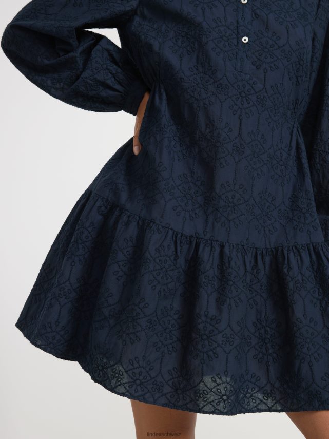 robe courte à manches longues avec broderie marine Lindex vêtements femmes D44L8F34