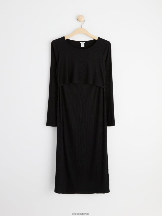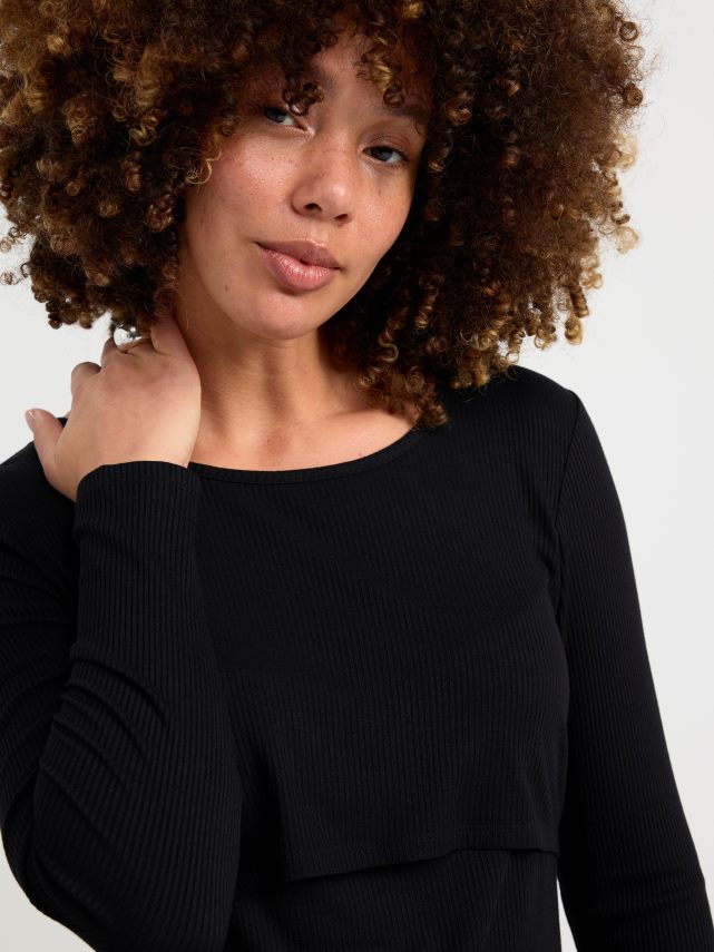 édition en ligne. robe longueur genou en jersey côtelé doux avec manches longues et encolure ronde. la partie supérieure est dotée d’une double couche pratique pour faciliter l’accès aux soins infirmiers. matériel. cette pièce est fabriquée en écovero Lenzing, une option plus durable par rapport à la viscose conventionnelle. le matériau provient d’une foresterie responsable et est produit avec un impact moindre sur l’environnement.