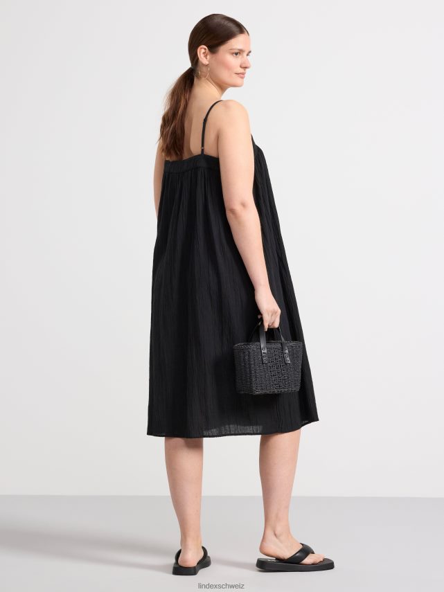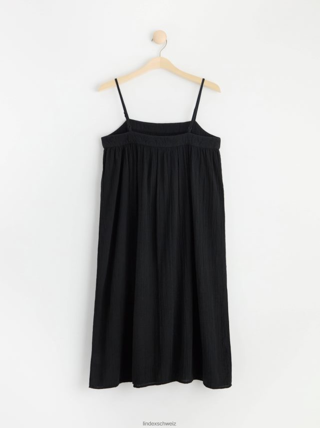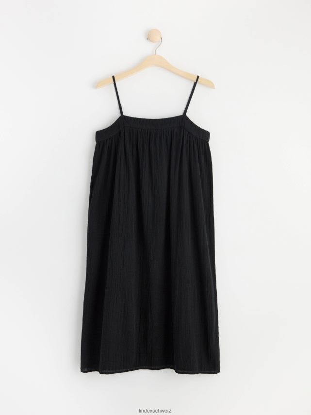 la robe parfaite pour les journées ensoleillées. cette robe est réalisée dans un mélange de coton léger et légèrement transparent avec une texture froissée. fines bretelles réglables et bordure sur le dessus avec coutures décoratives.