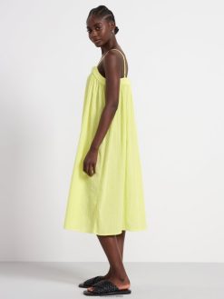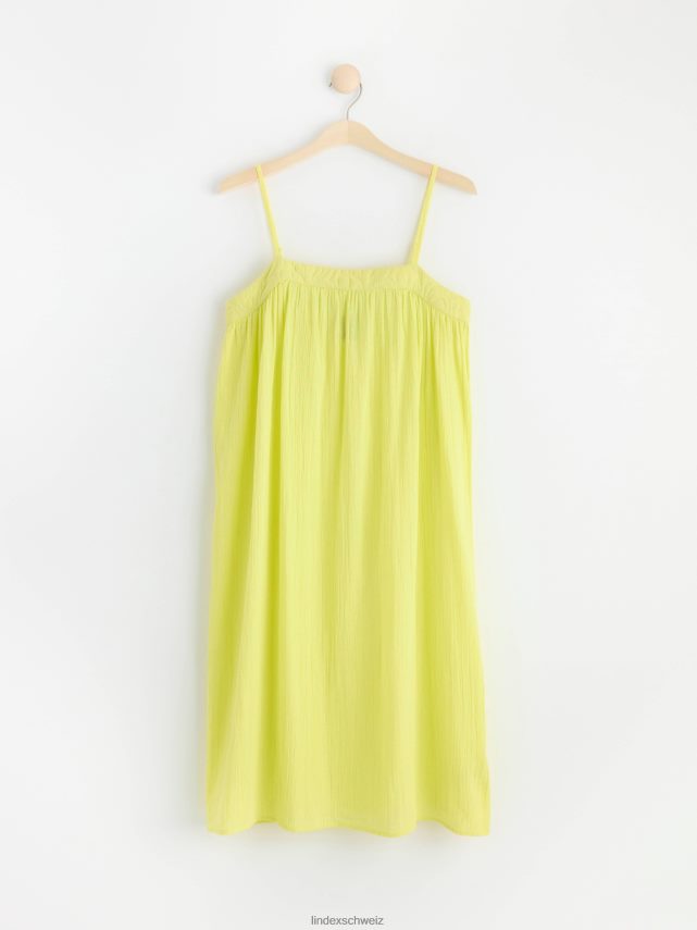 la robe parfaite pour les journées ensoleillées. cette robe est réalisée dans un mélange de coton léger et légèrement transparent avec une texture froissée. fines bretelles réglables et bordure sur le dessus avec coutures décoratives.