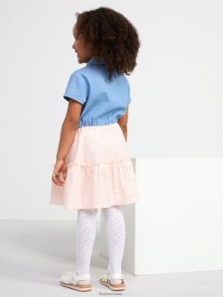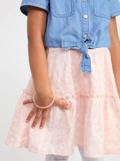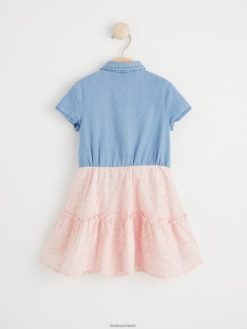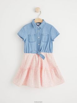 une robe à manches courtes avec une chemise en jean classique en haut et une jupe en coton à motifs en bas.