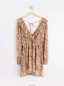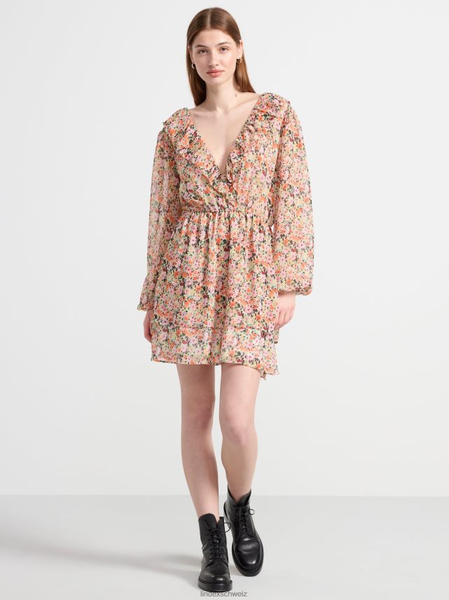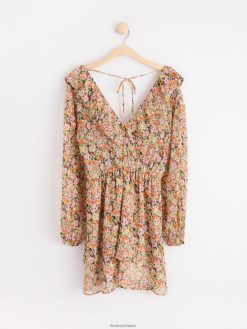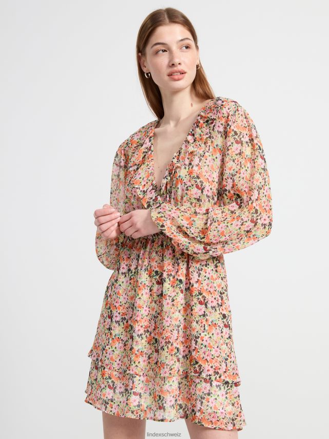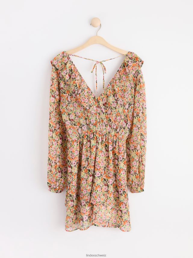 robe en mousseline à manches longues avec des fleurs orange Lindex vêtements femmes D44L8F98