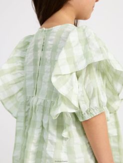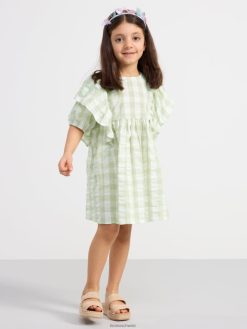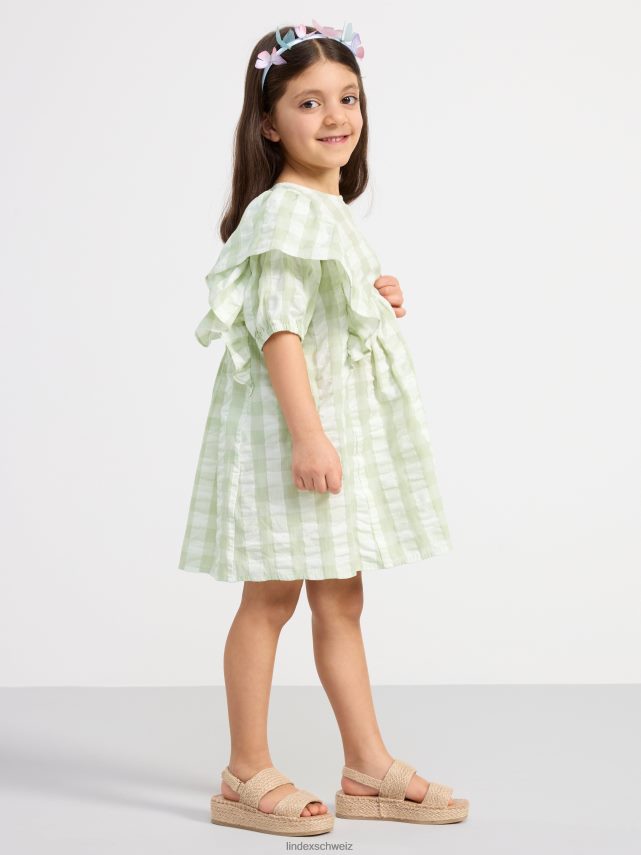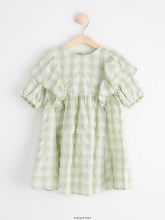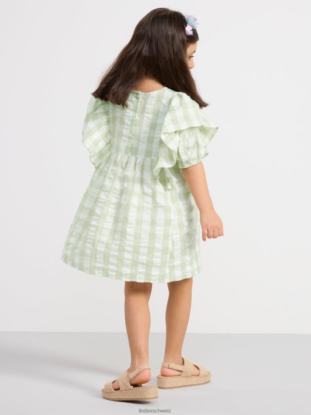 robe en seersucker à carreaux et manches courtes aqua légèrement poussiéreux Lindex vêtements enfants D44L8F3098