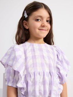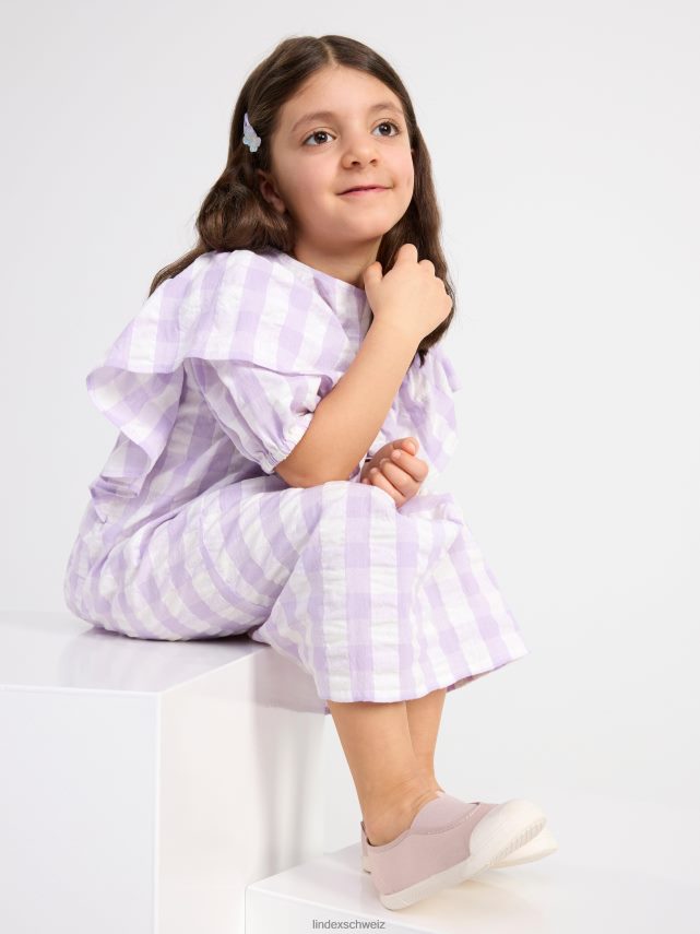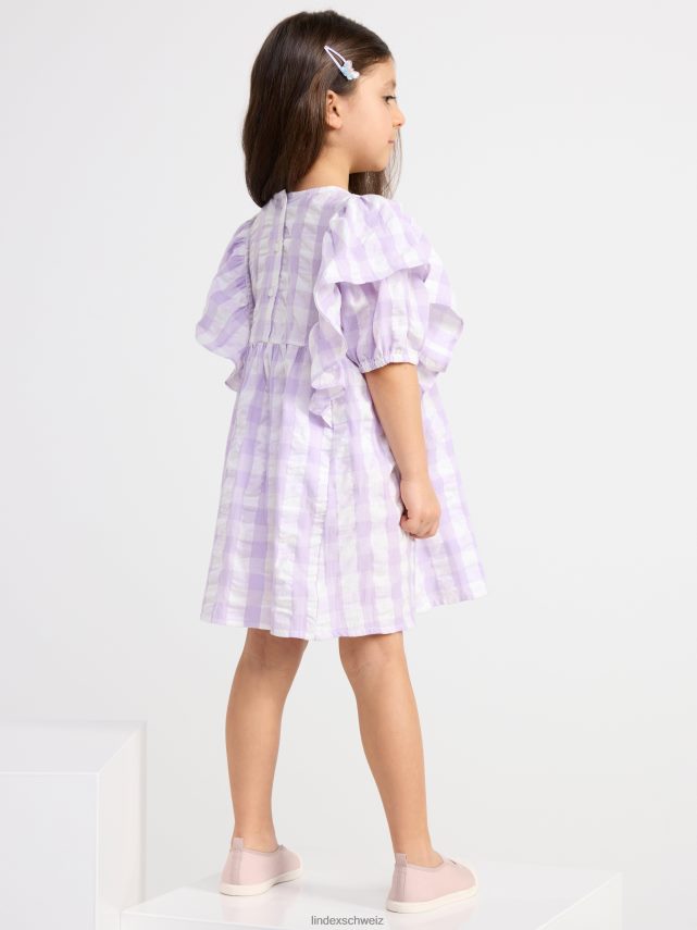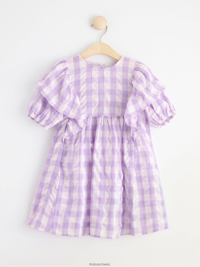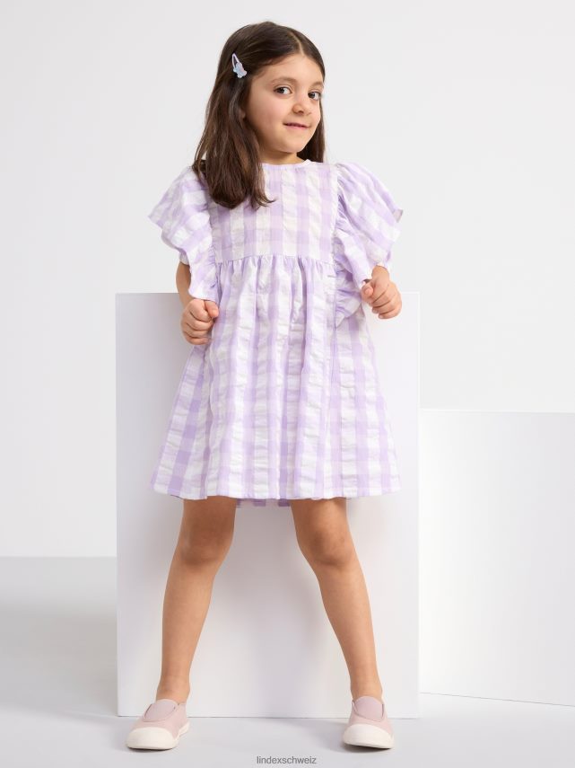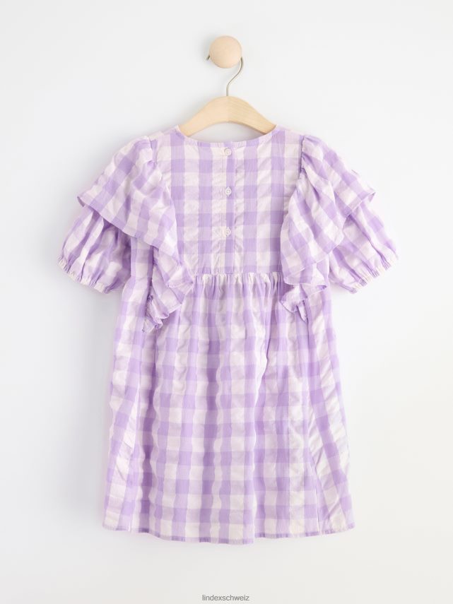 robe en seersucker à carreaux et manches courtes lilas clair Lindex vêtements enfants D44L8F3095