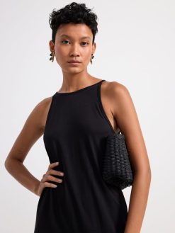 robe longue à enfiler en viscose douce avec trou de serrure au dos. matériel. cette pièce est basée une fois de plus sur sodra, une nouvelle matière première innovante en fibre de viscose, où des textiles recyclés sont combinés avec du bois issu de forêts gérées de manière responsable. Oncemore est un matériau de haute qualité et est produit avec un impact moindre sur l’environnement par rapport aux matières premières en fibre de viscose conventionnelles.
