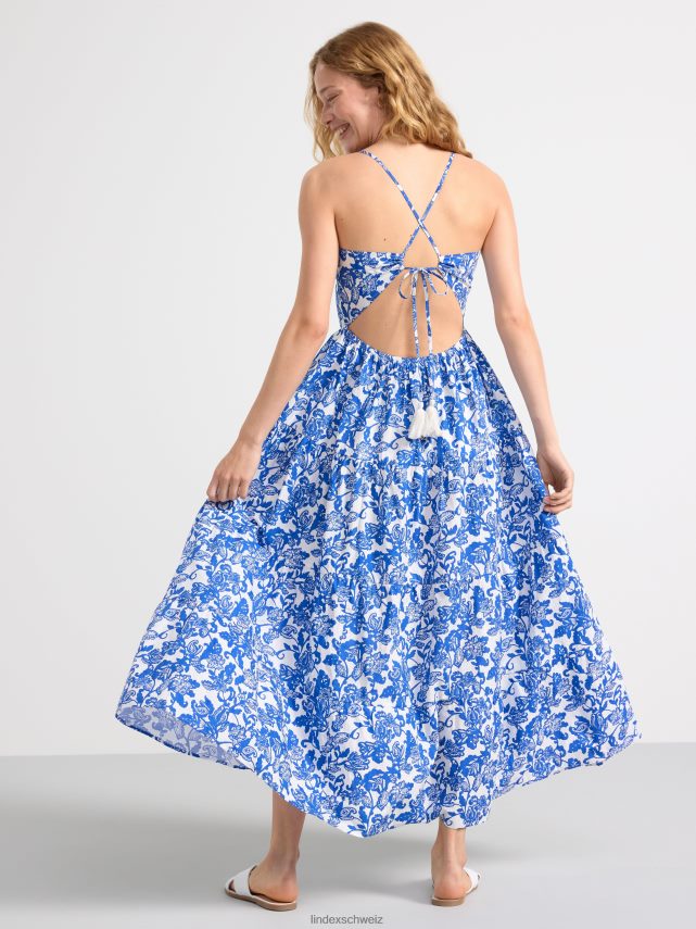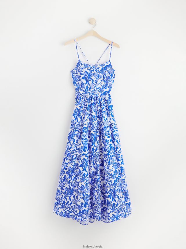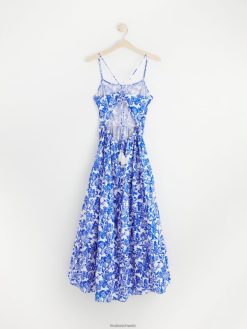 robe longue à fleurs avec volants bleu fort Lindex vêtements femmes D44L8F74