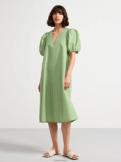robe mi-longue avec manches courtes bouffantes et col en V, confectionnée dans un mélange de coton impeccable.