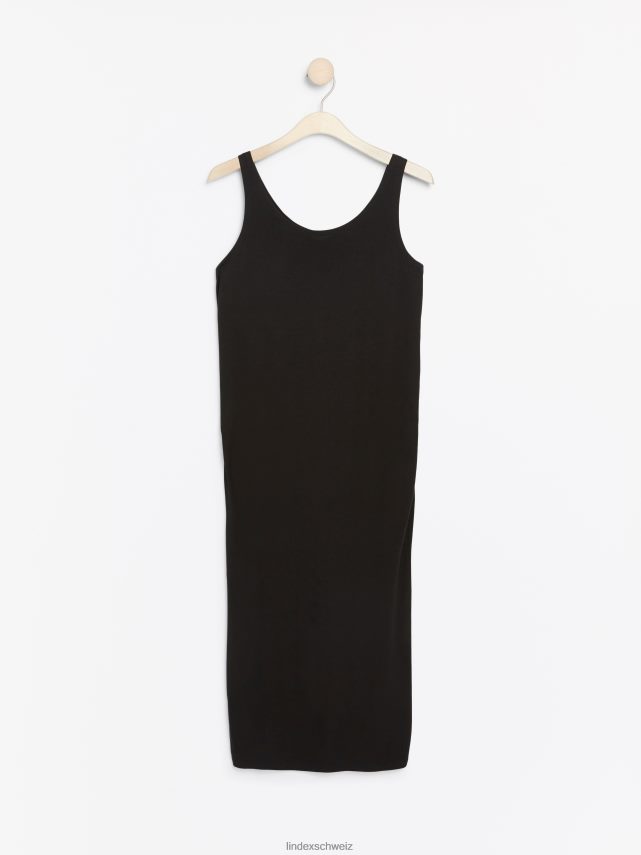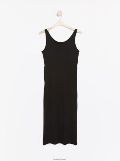 une robe noire sans manches élégante et confortable avec une silhouette ajustée et des fronces sur le devant, confectionnée en jersey doux. associez-le à différents accessoires pour l’adapter à votre style personnel et associez-le à un cardigan douillet lorsqu’il fait froid. le tissu est fabriqué à partir de viscose éco-responsable par ecovero, une option plus durable par rapport à la viscose conventionnelle.