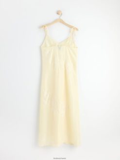 une robe nuisette longueur midi confectionnée dans un matériau satiné doux, avec de fines bretelles qui se nouent aux épaules et des fleurs brodées transparentes. matériel. cette pièce est partiellement fabriquée en polyester recyclé. Lorsque l’on utilise du polyester recyclé, cela signifie que des matériaux qui ont déjà été produits, comme les bouteilles en PET, ont une autre chance. il est beaucoup plus économe en ressources que la production de nouveaux matériaux, ce qui le rend meilleur pour l’environnement et réduit l’impact climatique.